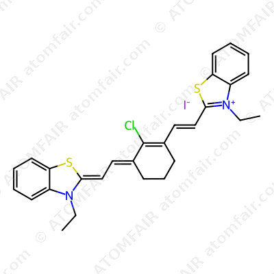 Alias: 2-(2-{2-Chloro-3-[2-(3-ethyl-1,3-benzothiazol-2(3H)-ylidene)ethylidene]cyclohex-1-en-1-yl}ethenyl)-3-ethyl-1,3-benzothiazol-3-ium iodide; 2-((1E)-2-{2-chloro-3-[2-(3-ethyl(3-hydrobenzothiazol-2-ylidene))ethylidene]cy clohex-1-enyl}vinyl)-3-ethylbenzothiazole, iodide; DTXSID40698329; SBB059294; AKOS000814223