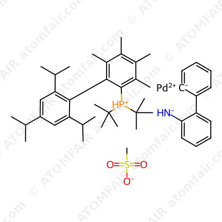 Alias: Methanesulfonato(2-di-t-butylphosphino-3,4,5,6-tetramethyl-2′,4′,6′-tri-i-propylbiphenyl)(2′-amino-1,1′-biphenyl-2-yl)palladium(II); RefChem:811484; Methanesulfonato (2-di-tert-butylphosphino-3,4,5,6-tetramethyl-2′,4′,6′-triisopropyl-1,1-biphenyl)(2′-amino-1,1′-biphenyl-2-yl) palladium(II); Me4 t-ButylXPhos Palladacycle Gen. 3; Methanesulfonato(2-di-t-butylphosphino-3,4,5,6-tetramethyl-2′,4′,6′-tri-i-propylbiphenyl)(2′-amino-1,1′-biphenyl-2-yl)palladium(II), 4MetBuXPhos Pd G3