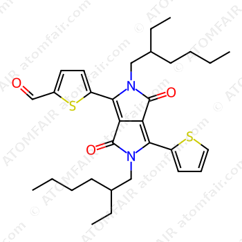 Alias: SCHEMBL18249373; 5-(2,5-Bis(2-ethylhexyl)-3,6-dioxo-4-(thiophen-2-yl)-2,3,5,6-tetrahydropyrrolo[3,4-c]pyrrol-1-yl)thiophene-2-carbaldehyde; 5-[2,5-bis(2-ethylhexyl)-3,6-dioxo-1-thiophen-2-ylpyrrolo[3,4-c]pyrrol-4-yl]thiophene-2-carbaldehyde