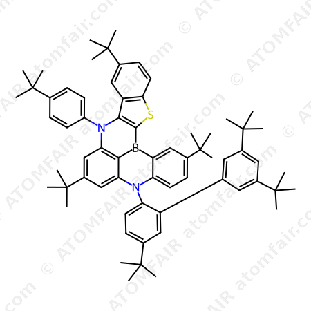 Alias: 4,11,18-Tritert-butyl-8-[4-tert-butyl-2-(3,5-ditert-butylphenyl)phenyl]-14-(4-tert-butylphenyl)-22-thia-8,14-diaza-1-borahexacyclo[11.10.1.02,7.09,24.015,23.016,21]tetracosa-2(7),3,5,9,11,13(24),15(23),16(21),17,19-decaene; EX-A8382; 5H,9H-[1]Benzothieno[2 inverted exclamation marka,3 inverted exclamation marka:5,6][1,4]azaborino[2,3,4-kl]phenazaborine, 2,7,11-tris(1,1-dimethylethyl)-9-[4-(1,1-dimethylethyl)phenyl]-5-[3 inverted exclamation marka,5,5 inverted exclamation marka-tris(1,1-dimethylethyl)[1,1 inverted exclamation marka-biphenyl]-2-yl]-; 5H,9H-[1]Benzothieno[2′,3′:5,6][1,4]azaborino[2,3,4-kl]phenazaborine, 2,7,11-tris(1,1-dimethylethyl)-9-[4-(1,1-dimethylethyl)phenyl]-5-[3′,5,5′-tris(1,1-dimethylethyl)[1,1′-biphenyl]-2-yl]-