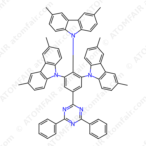 Alias: 9,9′,9”-(5-(4,6-Diphenyl-1,3,5-triazin-2-yl)benzene-1,2,3-triyl) tris(3,6-dimethyl-9H-carbazole); RefChem:548958; 9,9′,9”-(5-(4,6-Diphenyl-1,3,5-triazin-2-yl)benzene-1,2,3-triyl)tris(3,6-dimethyl-9H-carbazole); Tmcztrz; 9H-Carbazole, 9,9′,9”-[5-(4,6-diphenyl-1,3,5-triazin-2-yl)-1,2,3-benzenetriyl]tris[3,6-dimethyl-