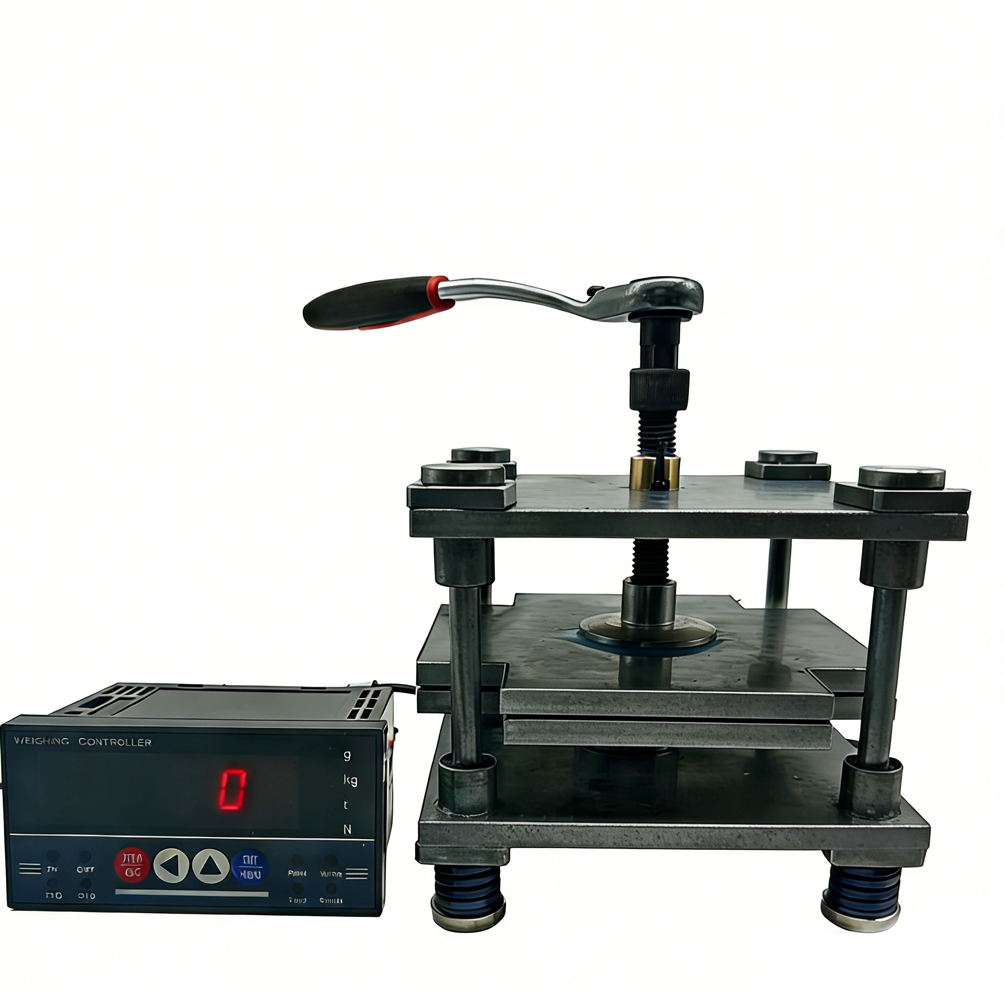 The carbon steel four-layer fixture is upgraded from the three-layer fixture, with an additional layer added to the original three-layer structure; the pressure sensor is still an essential structural component, and the sensor data cable can be connected to external acquisition equipment to realize real-time monitoring of test pressure. The core improvement is the adoption of a single nut locking design, which makes the pressure distribution more uniform compared with the three-layer version. It is cost-effective, easy to operate, has anti-rust performance after surface treatment, excellent rigidity, outstanding load-bearing performance (max 500kg), scratch-proof to protect battery film, and does not interfere with test data.