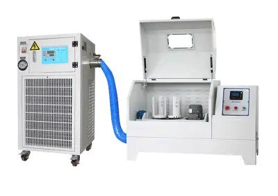Low temperature planetary ball mill is a combined equipment of planetary ball mill and air cooling device. The air cooling unit adopts the air-conditioning compression refrigeration principle, and the cold air circulation quickly removes heat generated during grinding. According to ambient temperature differences, the temperature of the grinding chamber can be controlled at 5–15℃. It is mainly used for ultra-fine grinding of materials under low-temperature processes. The air cooling device features simple structure, convenient operation, easy maintenance and low energy consumption.