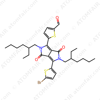 Alias: 2-Thiophenecarboxaldehyde, 5-[4-(5-bromo-2-thienyl)-2,5-bis(2-ethylhexyl)-2,3,5,6-tetrahydro-3,6-dioxopyrrolo[3,4-c]pyrrol-1-yl]-; DPP26-CHO-Br; MFCD34598484; 5-[4-(5-Bromo-2-thienyl)-2,5-bis(2-ethylhexyl)-3,6-dioxo-2,3,5,6-tetrahydropyrrolo[3,4-c]pyrrol-1-yl]thiophene-2-carbaldehyde