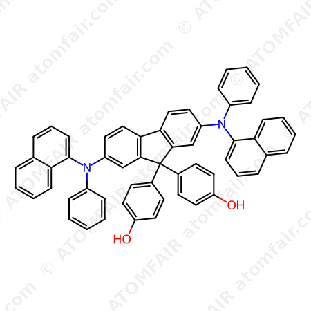 Alias: 4,4′-(2,7-Bis(naphthalen-1-yl(phenyl)amino)-9H-fluorene-9,9-diyl)diphenol; OYMOVAHOJQYYEL-UHFFFAOYSA-N; DB-218524; 4-[9-(4-hydroxyphenyl)-2,7-bis(N-naphthalen-1-ylanilino)fluoren-9-yl]phenol; Phenol, 4,4-[2,7-bis(1-naphthalenylphenylamino)-9H-fluoren-9-ylidene]bis
