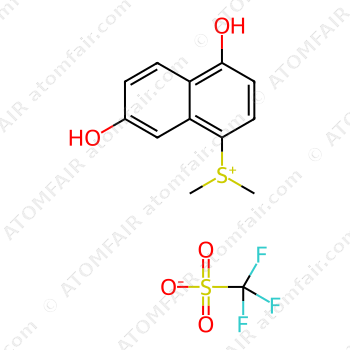 Alias: (4,7-Dihydroxynaphthalen-1-yl)dimethylsulfonium trifluoro; (4,7-Dihydroxy-1-naphthyl)dimethylsulfonium trifluoromethane sulfonate; SCHEMBL3287537; SCHEMBL29353026; (4,7-dihydroxynaphthalen-1-yl)dimethylsulfonium trifluoromethanesulfonate