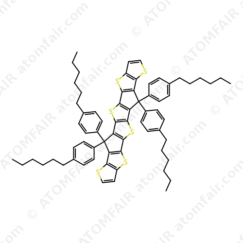 Alias: TTtTB6; SCHEMBL21173574; 3,3,16,16-tetrakis(4-hexylphenyl)-6,10,13,19,23,26-hexathiaoctacyclo[12.12.0.02,12.04,11.05,9.015,25.017,24.018,22]hexacosa-1(14),2(12),4(11),5(9),7,15(25),17(24),18(22),20-nonaene; 6,6,12,12-Tetrakis(4-hexylphenyl)-6,12-dihydro-Thieno[2”,3”:4′,5′]thieno[3′,2′:4,5]cyclopenta[1,2-b]thieno[2”’,3”’:4”,5”]thieno[2”,3”:3′,4′]cyclopenta[1′,2′:4,5]thieno[2,3-d]thiophene