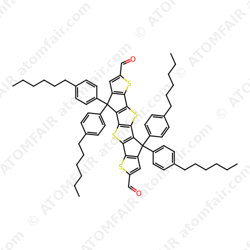 Alias: CID 139034461; 3,3,13,13-tetrakis(4-hexylphenyl)-7,10,17,20-tetrathiahexacyclo[9.9.0.02,9.04,8.012,19.014,18]icosa-1(11),2(9),4(8),5,12(19),14(18),15-heptaene-6,16-dicarbaldehyde; 4,4,9,9-Tetrakis(4-hexylphenyl)-4,9-dihydrothieno[2”,3”:3′,4′]cyclopenta[1′,2′:4,5]thieno[2,3-d]thieno[3′,2′:4,5]cyclopenta[1,2-b]thiophene-2,7-dicarboxaldehyde; Thieno[2”,3”:3′,4′]cyclopenta[1′,2′:4,5]thieno[2,3-d]thieno[3′,2′:4,5]cyclopenta[1,2-b]thiophene-2,7-dicarboxaldehyde, 4,4,9,9-tetrakis(4-hexylphenyl)-4,9-dihydro-; Thieno[2”,3”:3′,4′]cyclopenta[1′,2′:4,5]thieno[2,3-d]thieno[3′,2′:4,5]cyclopenta[1,2-b]thiophene-2,7-dicarboxaldehyde,4,4,9,9-tetrakis(4-hexylphenyl)-4,9-dihydro-