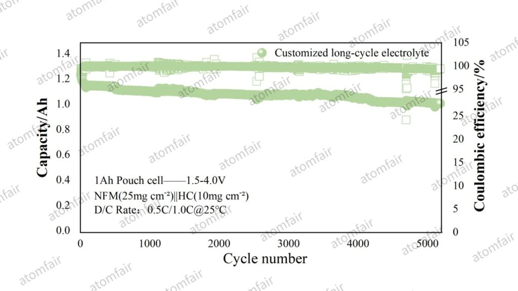 - Cycle Life: Achieved an ultra-long cycle life of 5,185 cycles at 0.5C/1.0C rates.